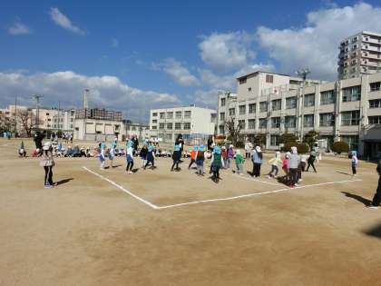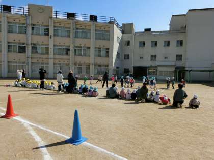 淀川小学校の広い運動場で遊ぶ園児たちを見ながら、私もとっても幸せな気持ちになりました。この子たちが、4月になって小学校に入学してくるのが、今からとても楽しみです。