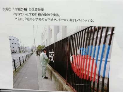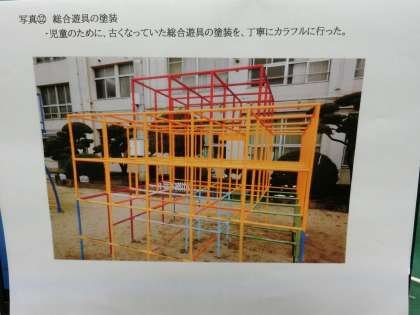 子どもたちが使う遊具をきれいに塗装してくれたり、学校の柵に美しいペイントをしてくれたり、玄関に美しい「日本庭園」を造ったりしてくれています。