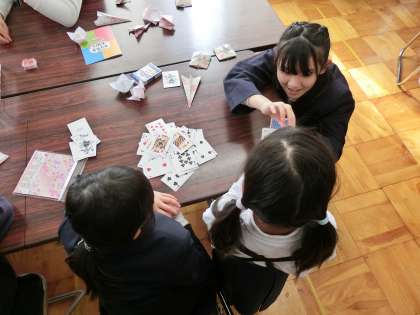 一緒にトランプ遊びをしたり、折り紙をしたりするなど楽しいひと時を過ごしていました。