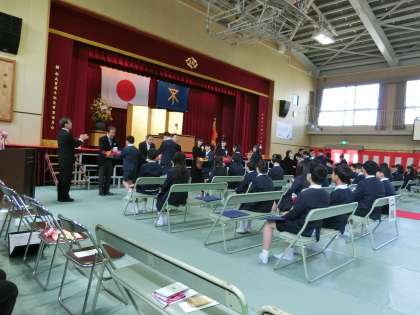 こうして、第103回の卒業式が終わりました。卒業生たちは、快晴の空の下、運動場にできた花道を通って門出していきました。