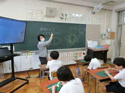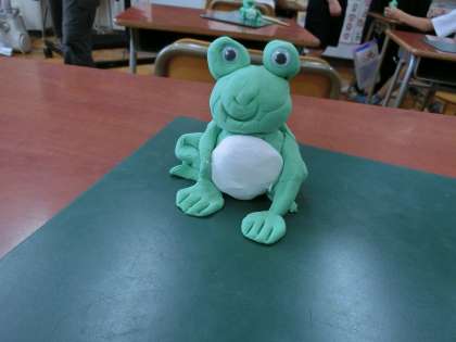 お互いに出来上がったカエルを見ながら、みんなで大笑いしていました。とても仲の良い3.4年生の雰囲気が伝わってきて、ほのぼのした雰囲気になりました。