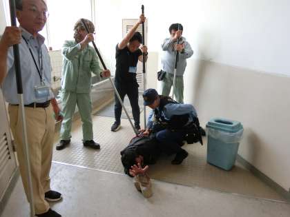 都島警察の方の協力の下、本番さながらの緊迫した訓練を行うことができました。