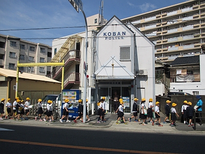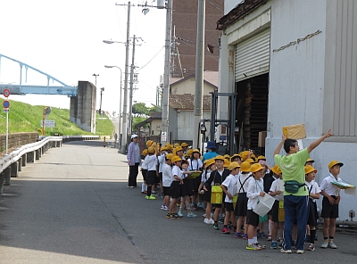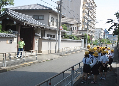 3年生が社会科の学習で、「校区めぐり」をしました。学校を出発し、地図を見て自分の今いる場所を確かめながら、善福寺、桜宮高校などいくつかのポイントを見学しながら校区内を巡りました。