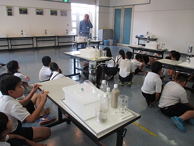 4年生が社会見学で柴島浄水場に行きました。浄水場内では淀川から水を取り込んで、きれいにしていき、飲み水となって各家庭に送られていくようすを見学しました。また班に分かれてにごったどろ水を砂や活性炭を使ってろ過しきれいにする実験もしました。
