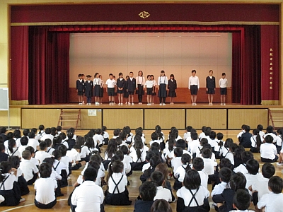 児童朝会の時間に後期の代表委員メンバーの紹介がありました。