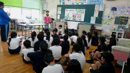 5年生は発育測定を実施しています。保健室の先生の注意をしっかり聞いています。
