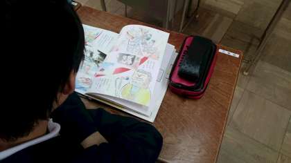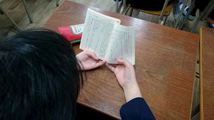 毎週水曜日の朝は読書の時間です。自分で選んでいますが、難しい本を読んでいる高学年もいます。