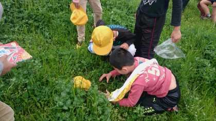 4年生は淀川の堤防にいって、春をみつけます。からすのえんどう・たんぽぽ・・・・