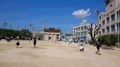 今日はとても天気が良いので運動場で遊ぶ児童が多いです。ドッジボールをする人もいますが、強そうです!!