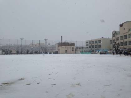 2月14日(金) 朝から雪が降って、運動場にも雪がつもりました。