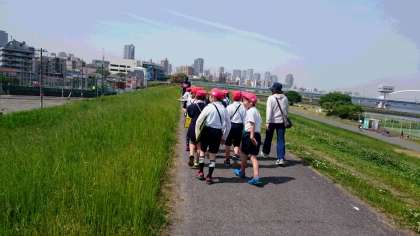 3年生は校区たんけんを実施しました。淀川の堤防からは校区よく見えます。自分の家がみえた!という声が聞こえます。