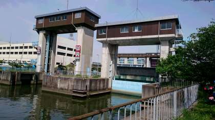 毛馬のこうもん。校区には「毛馬のこうもん」があります。大きな門をあけたり、しめたりして水の調節をしているのですね。