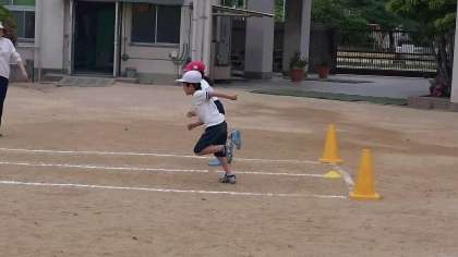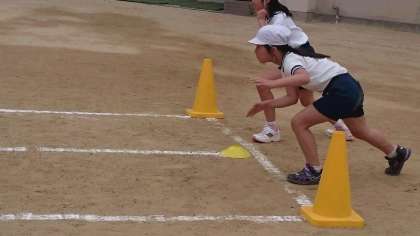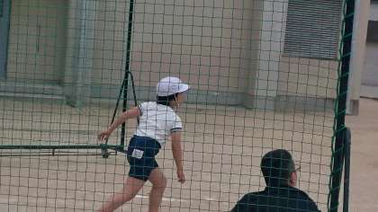 雨が降る前に3年生の体力テストが一部のみ実施されました。真剣にとりくんでいます!
