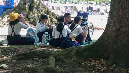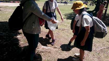 お弁当やおやつを食べた後はゴミを拾います。自分が出したものでなくても集めました。