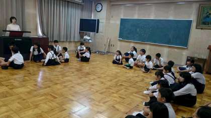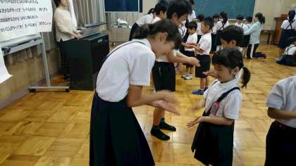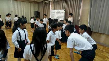 6年生と1年生との交流会がありました。一緒に校歌も歌いました。淀っこパラダイスのときには1年生が6年生のお手伝いに行きます。
