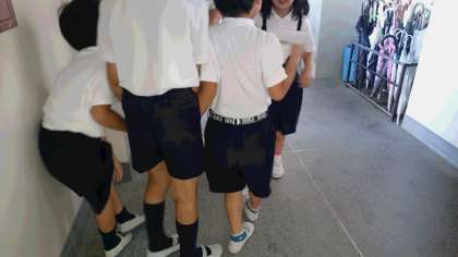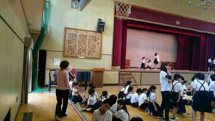 今日の児童集会は「しりとりゲーム」です。「ち」から始まるのは難しかったようです。