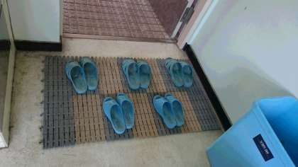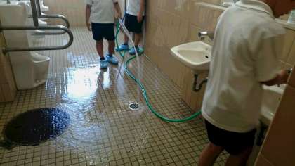 トイレ掃除です。ていねいにみがきます。最後はスリッパをきれいにそろえます!