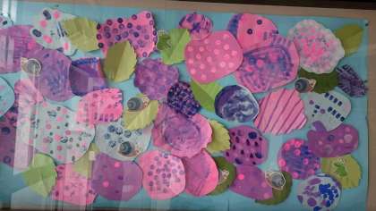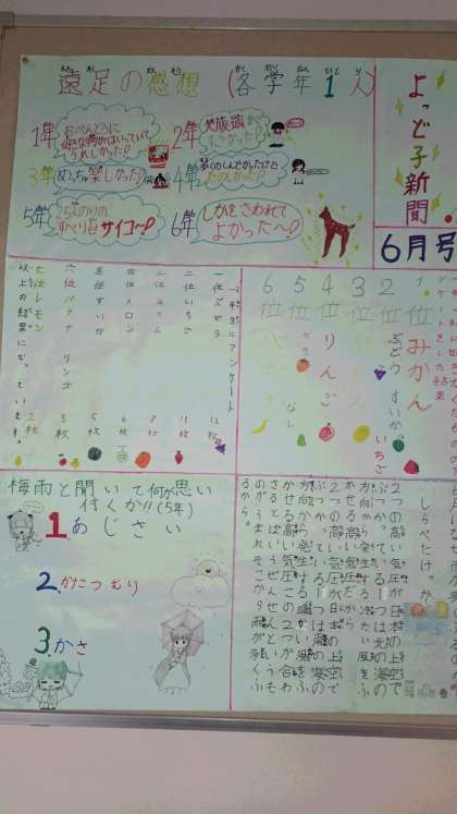 職員室前に6月の新聞をはっています。遠足の感想は?
