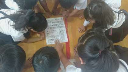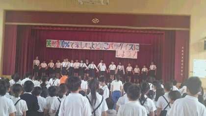 明日はみんなが楽しみにしている「淀っこパラダイス」、代表委員が説明をしています。そのあと縦割り班で打ち合わせをしています。1年生も迷子にならないように!最後におはようの歌に手話をつけて歌いました。