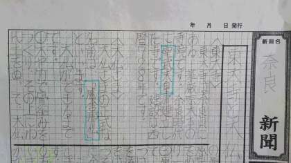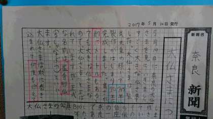 6年生は勉強も頑張っています。算数の復習の時間ですが、後ろには遠足に行ったときの新聞が掲示されています。