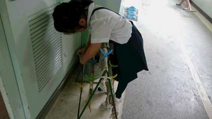 入学してから3か月がたちました。お掃除も上手になりました。ぞうきんも上手に使えます!