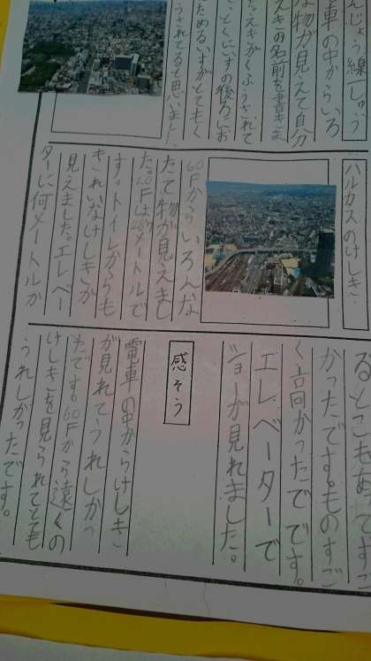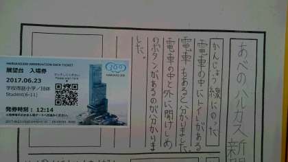 環状線一周とハルカスに社会見学に行ったときの新聞です。いろいろな感想がありますね。