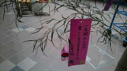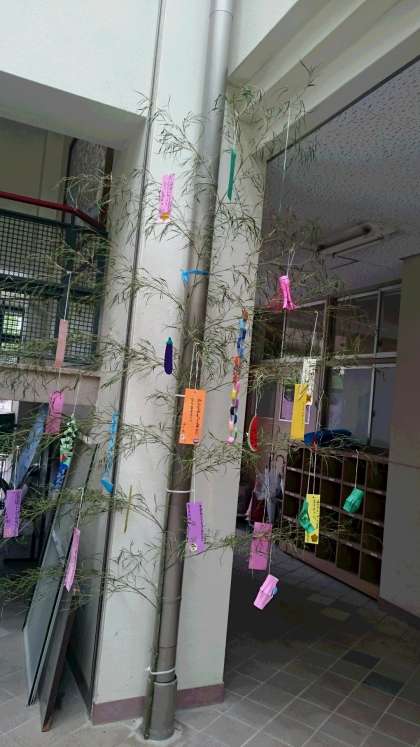 七夕の笹に願いを込めています。クラスみんなが幸せになりますように。