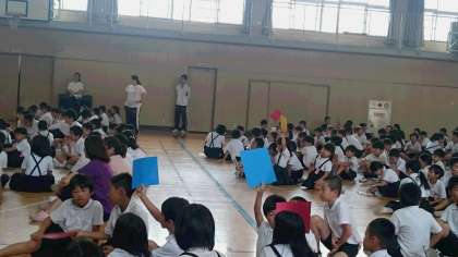 クイズはが低学年用・中学年用・高学年用にわけて出題していました。正解をきくと「えー?」という驚きの声も上がりました。