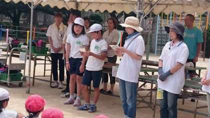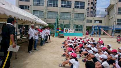 校庭キャンプの開会式。いよいよ楽しみにしていた校庭キャンプが始まります。保護者のみなさんがずっと4年生のために準備してくださいました。けがのないようにすごしましょう。