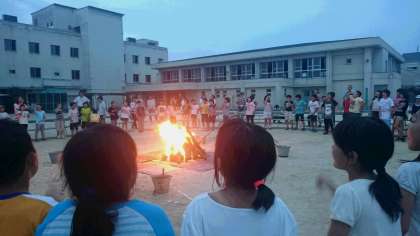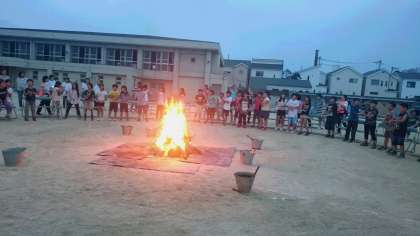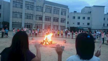 「どんな人がすきですか」「友達は大事やで」「キャンプだほい」をうたった後、いろんな先生が登場してゲームや歌を歌いました。