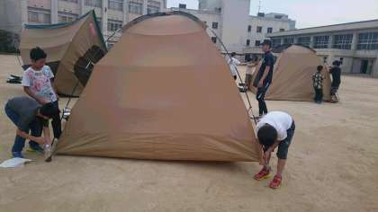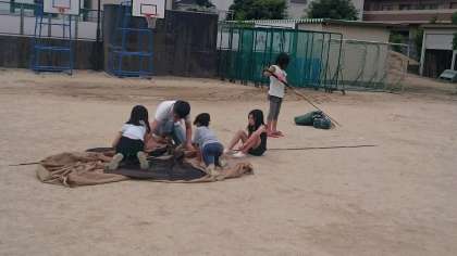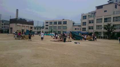 校庭キャンプ テントのかたづけ
