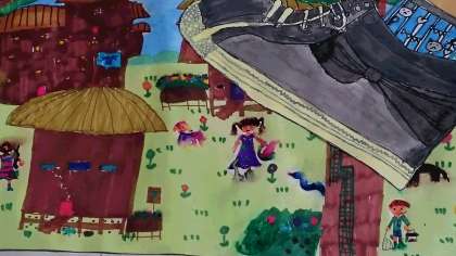 巨人になって冒険しよう!お金をたくさん作っているのかな?アメリカに行って英語をしゃべっているのかな?冒険はとても楽しいですね!