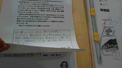 栄養ノートは6年間ためていきます。ずいぶん勉強になりましたね。おうちのひとのコメントや栄養士の先生のコメントもあります、大切に保管してください。