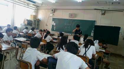 夏休みの注意事項を確認しています。バスケット・サッカー・野球・ソフトボール・水泳といろいろな運動にとりんでいる人がいます。けがのないように過ごしましょう。