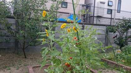 1年生のミニトマト、ひまわり、2年生のナスはどんどん大きくなっています。