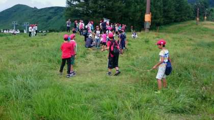 全員ゴールしたあとは自然散策です。上手にとんぼを木にのせています。おおさかではできないことをたくさん経験して帰りましょう。