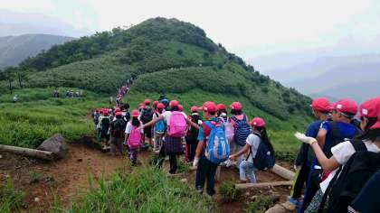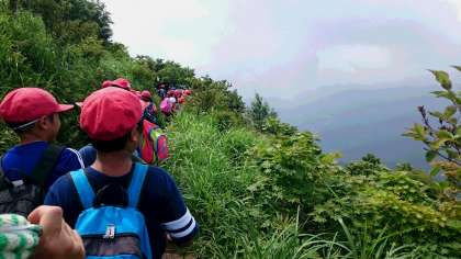 下山開始しました。バツグンの景色の中、下りは足が…。