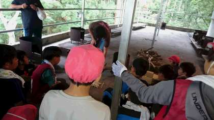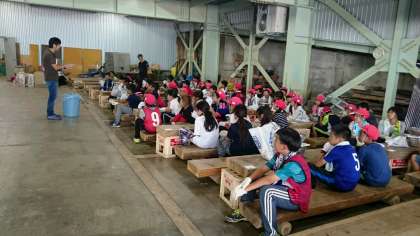 カレー作りの説明を聞いています。お腹がすいたー!