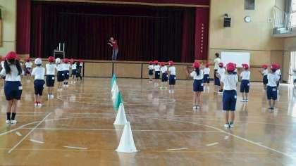 1年生も初めての運動会にむけて練習開始です。ウーッ!ガオー!