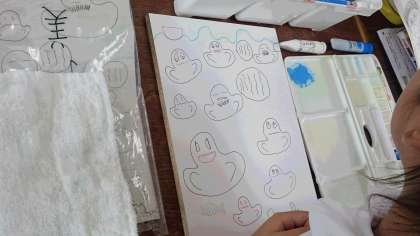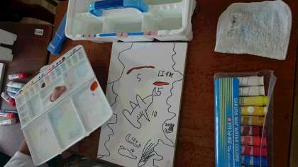 絵を描いて、板にも書いて・・・何ができるのかな?