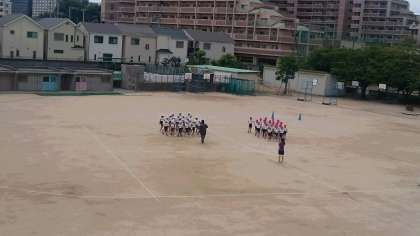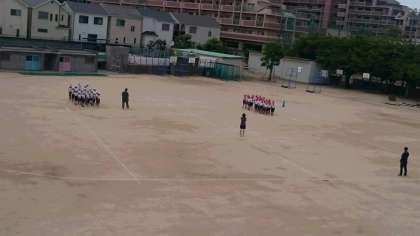 2年生の運動会の練習です。一生懸命歩く練習をしています。歩きながらのクロスができるようになってきました。