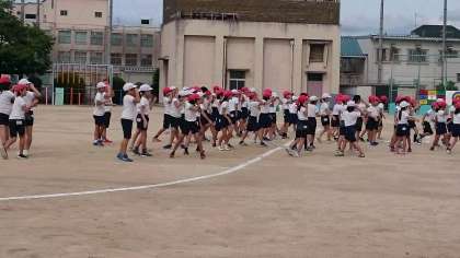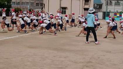 4年生は運動会練習にむけてゲストティーチャーにきていただき、アドバイスをもらいました。少しのアドバイスでみるみる上達しています!