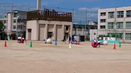 2年生は「おおだまころがし」の練習をしています。なかなか前にすすみませんが、がんばります!