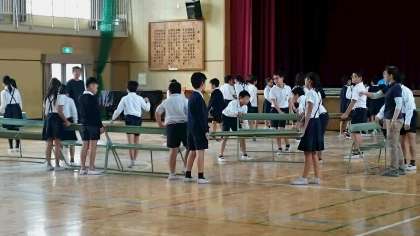 今日は来年度入学児童の健康診断を実施します。5年生が準備をしています。5年生の児童は午後から引率もします。