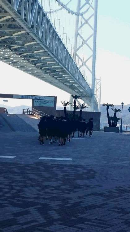 6年生の修学旅行は予定より早くに舞子公園に到着。皆元気です!