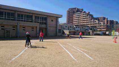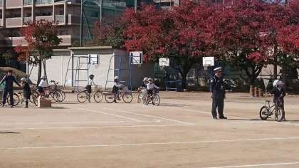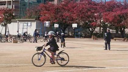 3年生は自転車で「安全確認!」小学生は自転車で歩道を通っても良いということですが、後ろ前・右・左、しっかり確認しましょう!