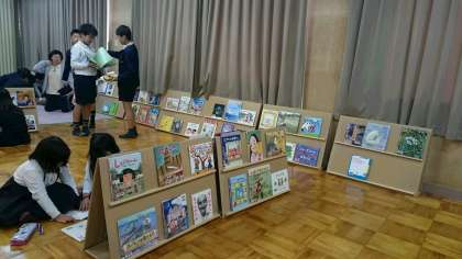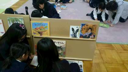 多目的室が絵本でいっぱいです。今週末まで絵本をよむことができる「絵本のひろば」を開いています。様々な絵本に夢中です。