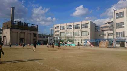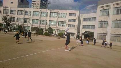 1年生がたこあげをします。自分で描いた絵がとてもきれいにみえます。今日は6年生のお兄さんやお姉さんがお手伝いをしてくれます。丁寧に教えてくれるのでとても楽しそうです。