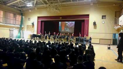 2学期最後の児童集会は「音楽クラブによる音楽集会」、曲は「ジングルベル」と「千本桜」でした。聞く態度もとてもよかったです。退場も生演奏で、素敵でした!