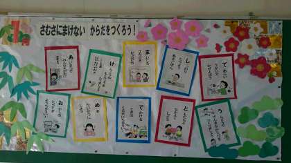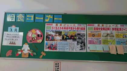 1月の給食委員会からのおしらせと目標。保健委員会からもお知らせがあります。手洗いうがいをしっかりして、給食もしっかり食べましょう!
